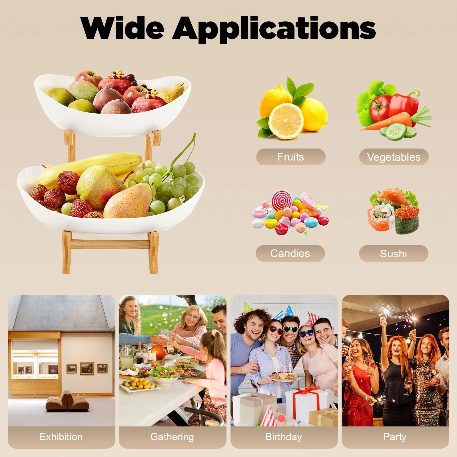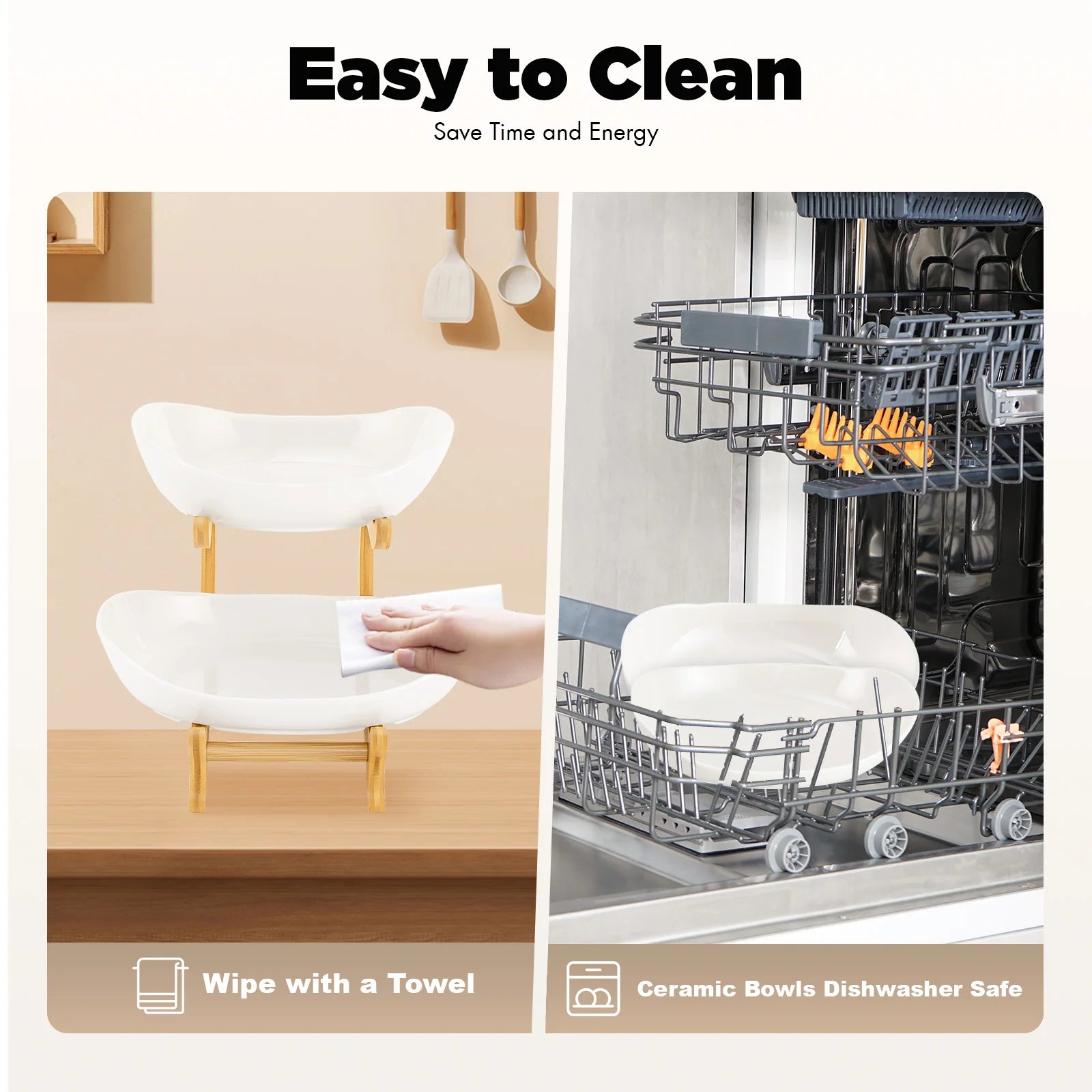 2-Tier Fruit Rack Ceramic Serving Bowls